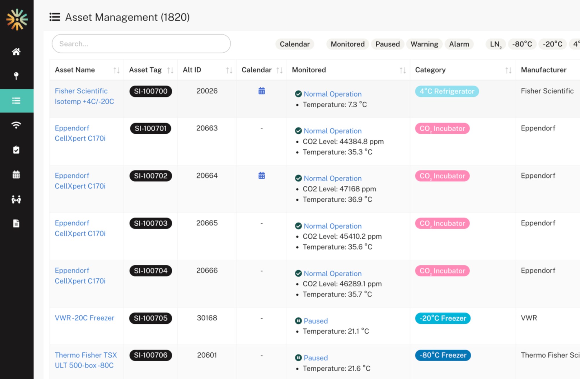 The widest range of lab monitoring devices in the market, ensuring seamless operations for all critical assets, from cold storage to incubators and environmental sensors.